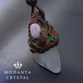 水晶のタンブルに、樹脂粘土(ブラウン)でアートしたペンダントトップです。