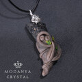 テクタイトのタンブルに、樹脂粘土(チャコールグレー)でアートしたペンダントトップです。