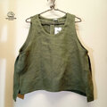 【厚手リネン】リネンのショートベスト◆オリーブ◆フリーサイズ(ウィンターリネン、15番手リネン100%)~ベスト・ジレ~