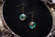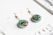 落ち着いたグリーンとブラウンが織りなすクラシカルな模様が美しいピアス。