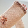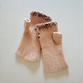 手編みの手袋をフェルト化させて密度を高めた温かい指なしミトンです。