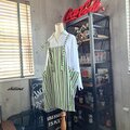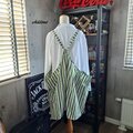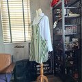 おしゃれなグリーンストライプのエプロンドレスが出来上がりました。