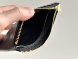 内部には、カードや硬貨を収納できる仕切りポケットを配置。二つ折りの紙幣が干渉しない絶妙なサイズ感に仕上げることで、コンパクトなお財布としての二面性も持たせました。用途やシーンに合わせて、コンパクトな財布としても、スマートな小物入れとしても活躍する、こだわりの詰まった逸品です。