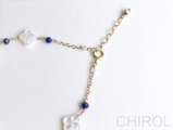 四つ葉の白いシェルと藍色のラピスラズリが愛らしい一品です。