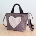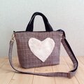 【秋冬SALE30%OFF】ツイード ハートのボア♡ショルダーバッグ/トートバッグ グレンチェック ブラウン 524