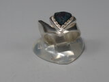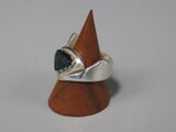 リングのサイズは13号、重さは10g、最大幅は20mm、手のひら側は7mm、金属部分は純銀です。