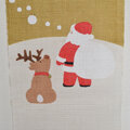 麻織布特有の深い色合いと、可愛いトナカイとサンタクロースの後ろ姿が