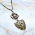 中世の物語から抜け出してきたようなアンティークゴールドの輝きを放つペンダントネックレスです