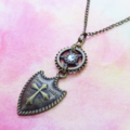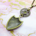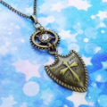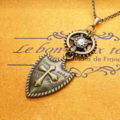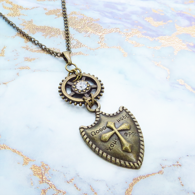 アンティークゴールド 盾(シールド)と歯車のゴシックネックレス スチームパンク風 スワロフスキー エンブレム 長さ調整可