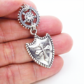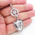 ペンダントトップは重厚感のある盾のモチーフとメカニカルな歯車が独創的なハーモニーを奏でています