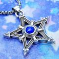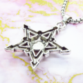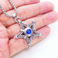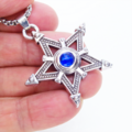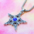 中心に蒼い輝きをもつシルバーカラーのペンタグラム(五芒星)をモチーフとしたペンダント・ネックレスです