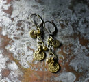 2種類の渦巻きインドブラス、小さなまん丸チャームを繋いだピアスです。