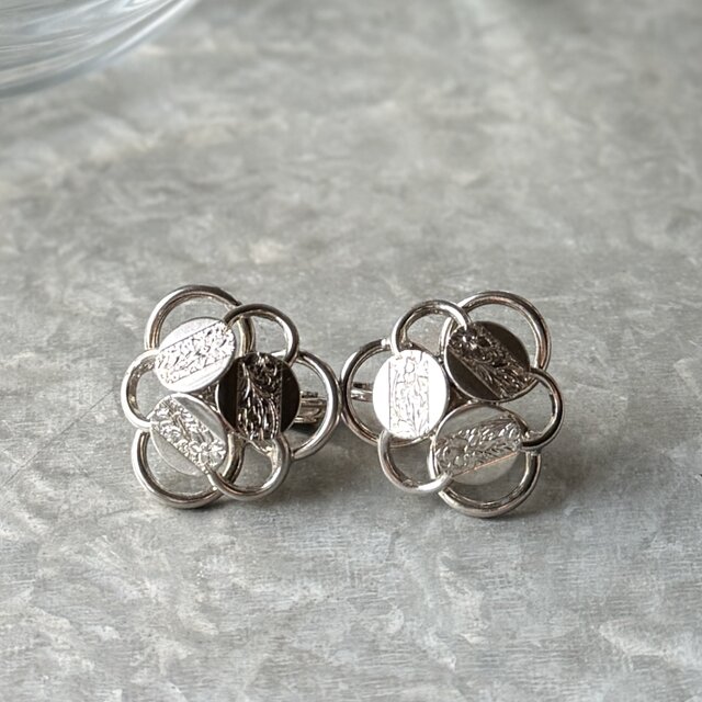 ボタニカル模様が型押しされたラウンドプレートとフープが合わさった、立体感のあるデザイン。