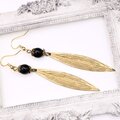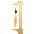 【フランス買付】ブラックビーズ×ロングリーフ ゴールドピアス*Art Deco Chic1980s