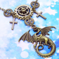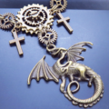 スチームパンク風のアンティークカラー(金古美色)のドラゴンと歯車のネックレスです