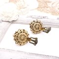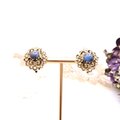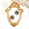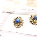 【アメリカ買付】AUSTRIAブルーカボション×フローラルメタル イヤリング|Antique Floral Blue1950s
