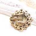深みのあるブルーカボションストーンを中心に、立体的なメタルフラワーが囲むロココ調のクラシックデザインです。