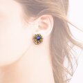 この ヴィンテージ ブルーカボション×フローラルイヤリング が、