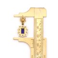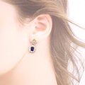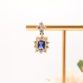 クラシカルなサファイアブルーのスクエアストーンを中心に、クリアストーンを繊細に配置した上品なジュエリーデザインです。