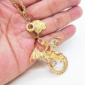 ドラゴンと歯車を組合せて更にマットゴールドカラーで統一した異色のネックレスとなっています