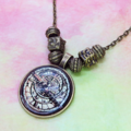 ペンダント部分に方位磁針・羅針盤のような幾何学的なイラストを用いたスチームパンク風ネックレスです