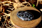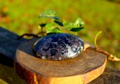 深いグレイに漆黒のサイロメレーン、浮かび上がるゴールドの輝き・・・・見つめれば見つめるほどに深く、宇宙の彼方へと誘ってくれる、そんなエネルギーの石です。しっかりと握りしめて、魔法のエネルギーを感じてください。