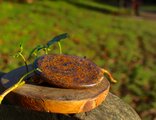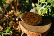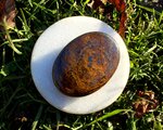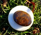 非常に大きくて光沢があり、落ち着いた色合いがとても魅力的な、ブロンザイトのパームストーンです。