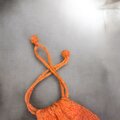 巾着紐は同糸で編み先端をポンポンでくるみました。