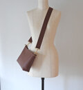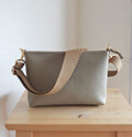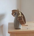 作品が到着いたしました。 優しいラテグレージュ色と細いレザーハンドルが、とても上品でフェミニンな印象の素敵なバッグですね。 季節を問わず活躍してくれる事間違いありません。ありがとうございました。