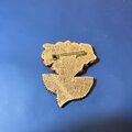 コードでケイトウの花をリアルに表現した、個性的なブローチです