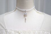 中心の花芯とコットンパールの光沢のある輝きが上品なチョーカー。