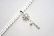 揺れるコットンパールとフリンジが愛らしく、白のレースとリボンは清楚な印象を与えます。