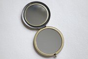 コンパクトタイプで、中のミラーは片方が拡大鏡になっています。つまみを押しながら開閉してください。