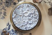 アンティークゴールドのミラーに、陶土で作った草花模様のプレートを合わせた作品です。
