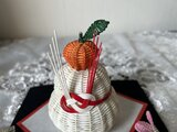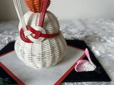 1㎜の籐で鏡餅を編みました。1mmの籐でミカンを編んで乗せました。