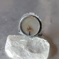 まるで蝋燭の灯火のようなデンドリティックアゲートを燻し加工を施しアンティークな雰囲気のシルバーリングに仕立てました。