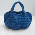 青いウールの糸をグラニーサークルに編み上げ、小さなバッグに仕上げました。