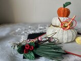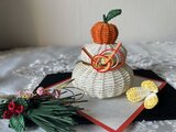 1㎜の籐で鏡餅を編みました。1mmの籐でミカンを編んで乗せました。