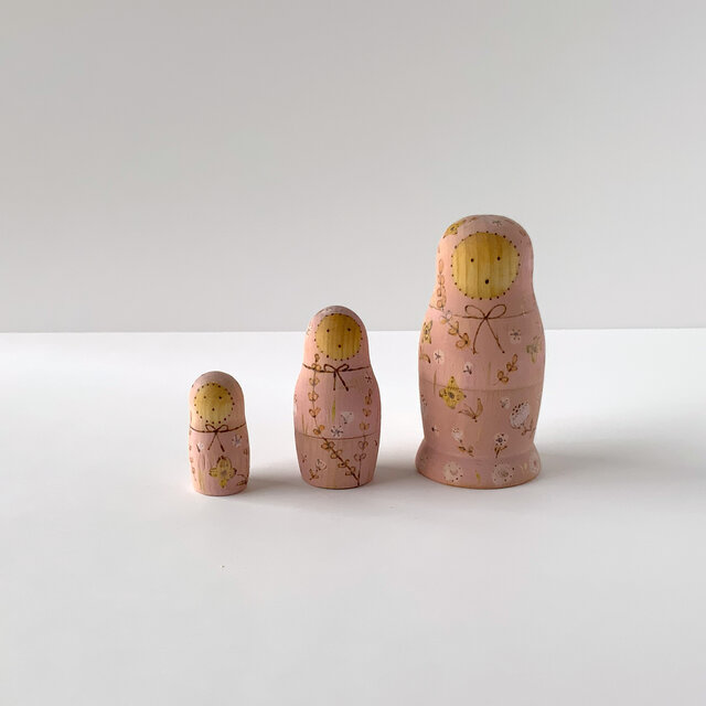 ピンクの女の子三人組のマトリョーシカ。