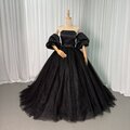 パーティードレス ブラック ベアトップ パフスリーブ フレアスカート ファスナー プリンセスライン 披露宴
