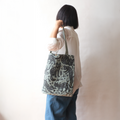 今回のバッグは、帆布生地にプリントを施した後に縫製し、さらに染色するという工程で仕上げています。