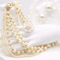 大小異なるフェイクパールとゴールドボールが贅沢に重なる、**マルチストランド(多連デザイン)**が特徴です。