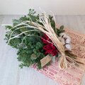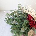 花材:モミ、赤トウガラシ、ユーカリ、綿花、ヒムロスギ