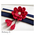 初節句・お食い初めに人気!◆4.5cmカメリア髪飾り(下がり付き)◆梅色のママでも簡単につけられるつまみ細工
