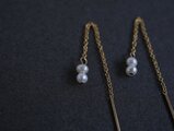 蕾 | 14kgf アメリカンチェーンピアス 小さな3mmの淡水パール 2粒 華奢ピアス