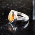 オレンジ色の独特の輝きを放つ、珍しい天然ジルコンのオーバルルースを用いた、シンプル天然石ジュエリー。ダイヤモンドと並ぶ屈折率を誇るジルコンならではのキラキラの光沢感と透明感、キャンディみたいな一点物のひと粒リングです。