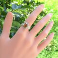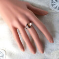 メインストーンの後ろ側のアームを動かして、ご自分の指のサイズに合わせて調整して頂けます。※但し2サイズ以上の調節や頻繁な調節は、金属疲労を起こす可能性がございますので、ご注意ください。