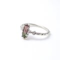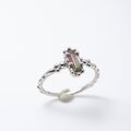 淡いピンクとグリーンが優しく溶け合うバイカラー・トルマリンの原石を、華奢な粒飾りリングに仕上げました。