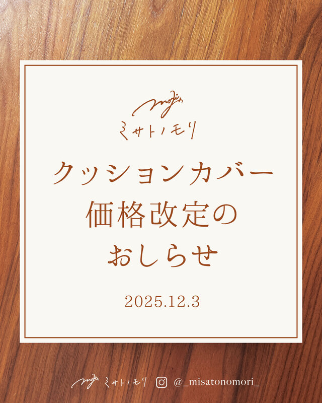 《 クッションカバー価格改定のおしらせ 》12月21日より改定|20日までのご注文は据置