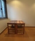 2つを縦に並べてダイニングテーブルに、横に並べてカウンターテーブルに必要がない時は畳んで収納しておくことができ状況に応じて使い勝手が良い折りたたみテーブルです。